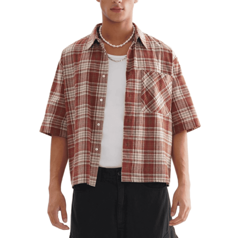 • Chemise à carreaux décontractée en coton à manches courtes pour hommes