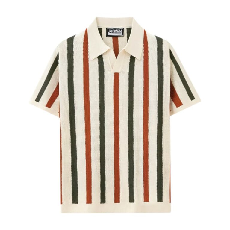 • Hommes - Polo d'été décontracté à manches courtes, rayé et infroissable