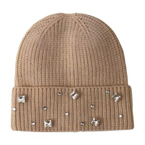 Bonnet d'hiver chaud pour femmes avec strass – Bonnet en coton tricoté avec diamants scintillants pour femmes