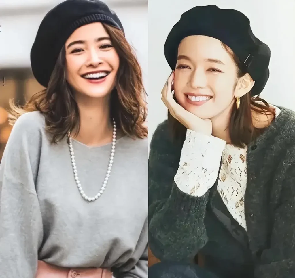 Choosing a beret that’s too close to the head can actually accentuate the cheekbones and pointed head. But a flat-topped hat is different; its crown is flat, and the brim is wide enough to just cover the area above the cheekbones, creating a harmonious look with the face shape.