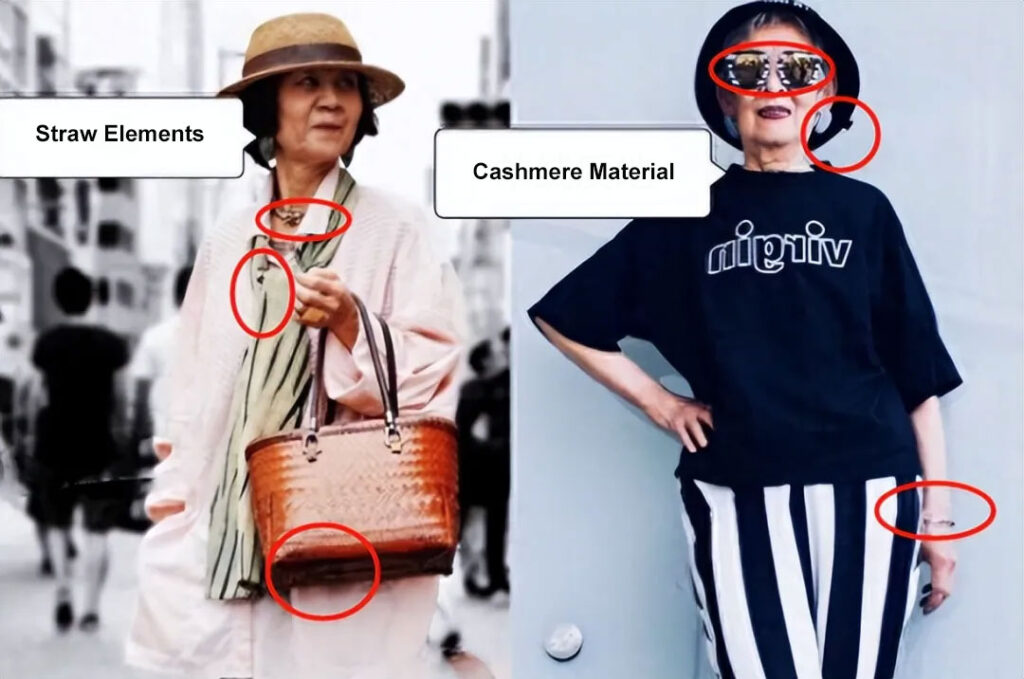 For instance, a red skirt paired with a green hat creates such a strong contrast that it’s already harsh on the eyes. However, Japanese women are adept at avoiding this pitfall. They either opt for monochromatic outfits or find subtle color echoes, subtly connecting the colors.