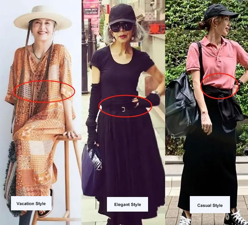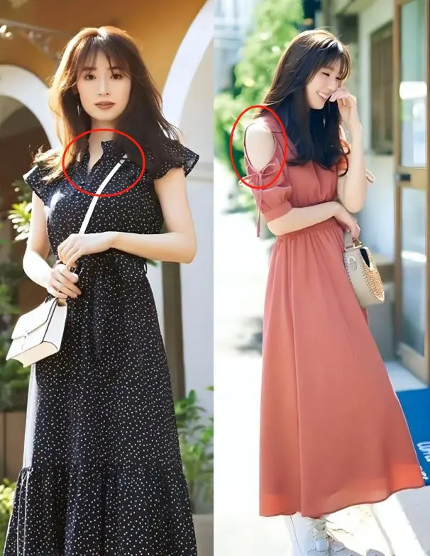 So Japanese women get the balance just right: V-neck dresses with necklines that aren’t too low; or dresses with slits in the sleeves. This level of skin exposure isn’t exaggerated, just right for middle-aged women!