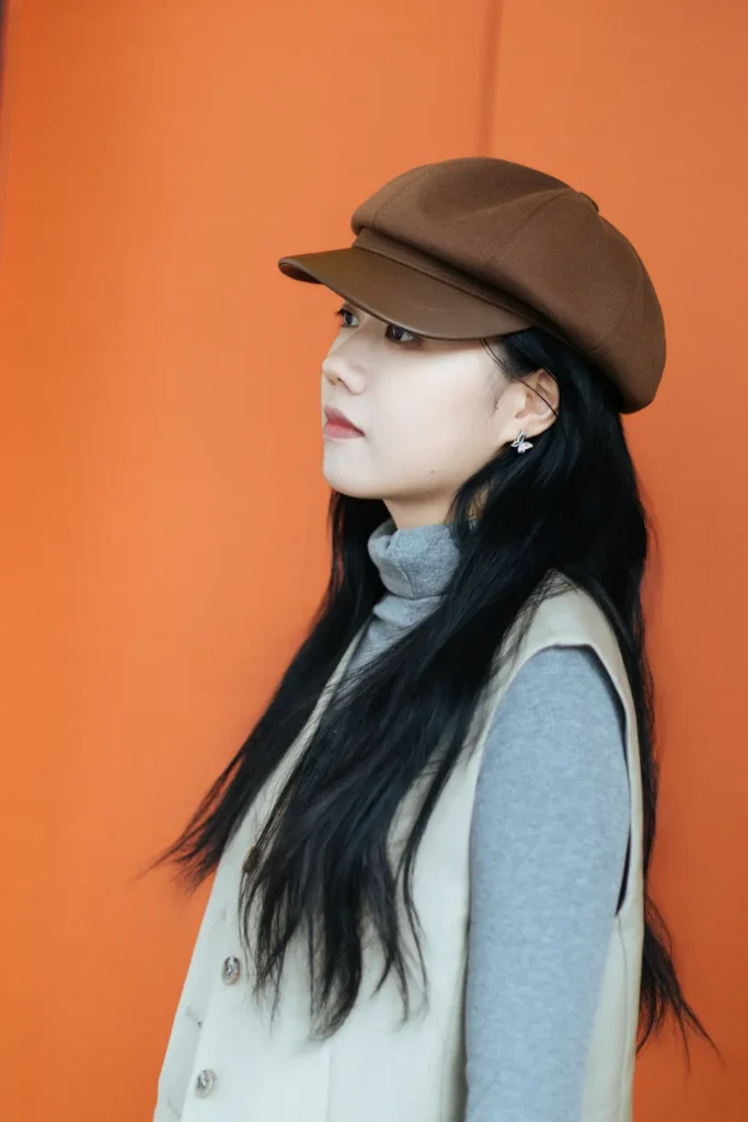 Therefore, when choosing a newsboy cap, girls with round or square faces can avoid style mistakes by opting for one with a rounded brim.